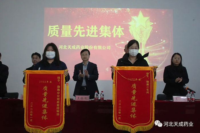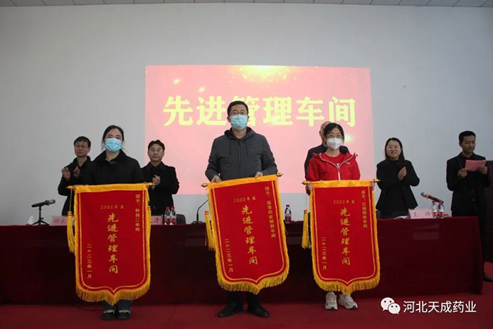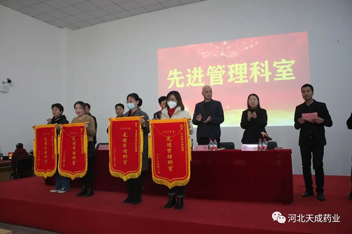 卯門生紫氣,兔歲報新春!告別難忘的2022,迎來全新的2023,回首過去的這一年奮斗路,展望天成新前程!2023年2月4日,天成藥業2022年度表彰大會暨迎元宵節文藝匯演,在三分廠活動室隆重舉行!