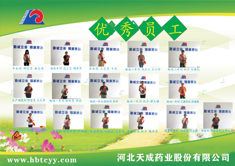 7 張健康 輸液一車間 滅菌班長 他踏實肯干,服從領導安排,積極工作,主動帶新人,在組成的新班驗證階段起到了模范帶頭作用。